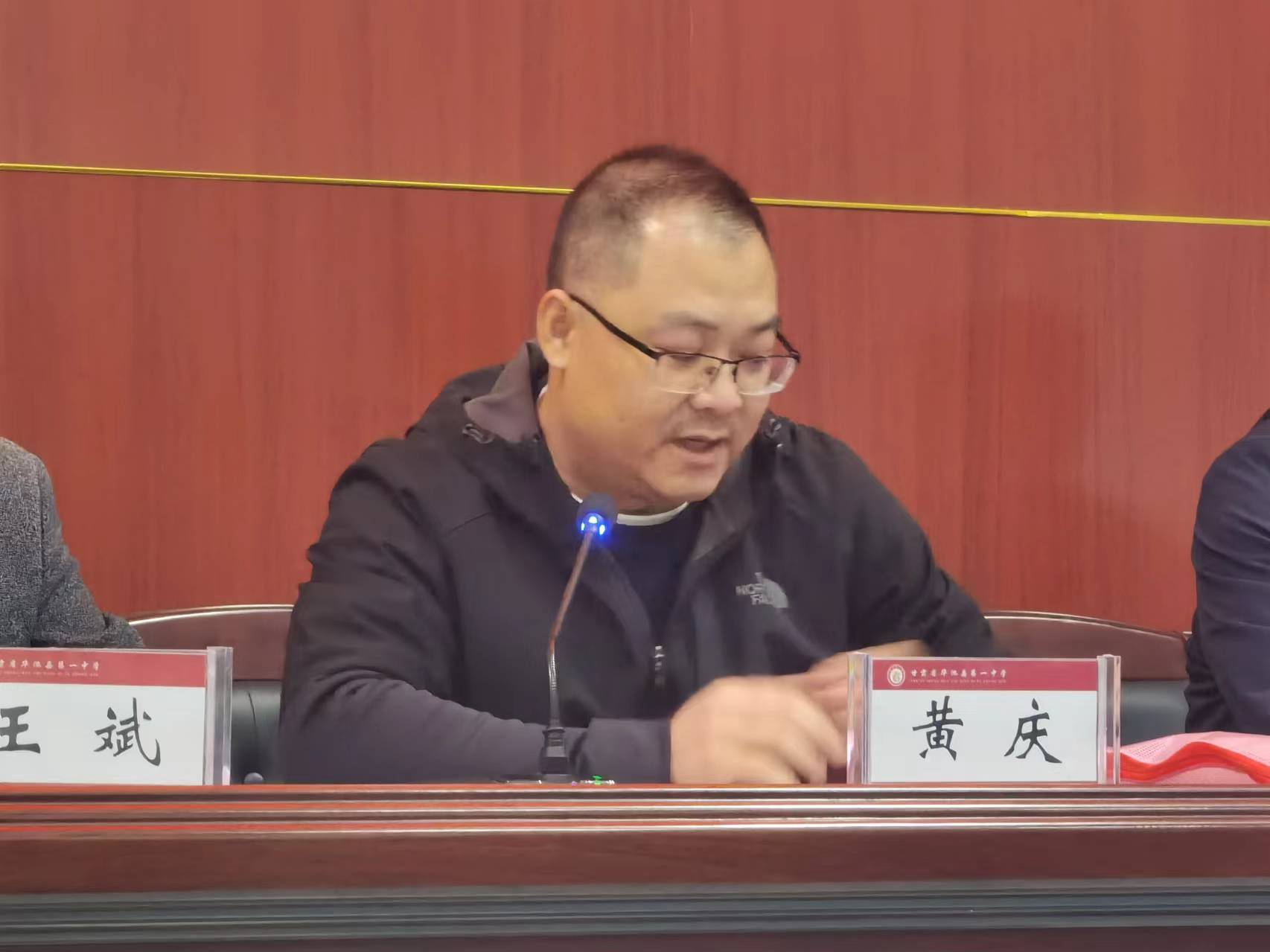 (圖:公司領(lǐng)導(dǎo)代表參加華池一中助學(xué)金發(fā)放儀式)